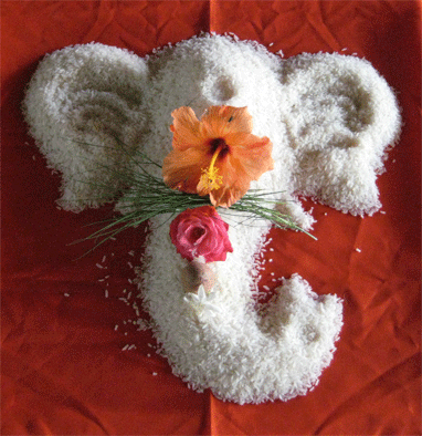 Ganpati is also considered the deity of knowledge ‘jnandatri’ – the one who bestows knowledge and understanding. This is why it is necessary that we understand what we are doing and why, so that we receive his gift of knowledge.